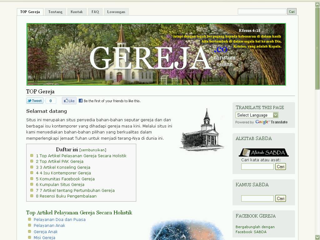 Situs ini merupakan situs penyedia bahan-bahan seputar gereja dan dan berbagai isu kontemporer yang dihadapi gereja masa kini. Melalui situs ini kami menyediakan bahan-bahan pilihan yang berkualitas dalam memperlengkapi jemaat Tuhan untuk menjadi terang-Nya di dunia ini.
