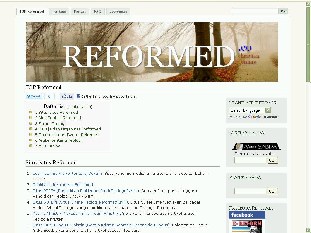 Reformed.co adalah situs yang berisi daftar sumber-sumber terbaik di internet tentang teologi Reformed yang telah dipilih oleh Redaksi.